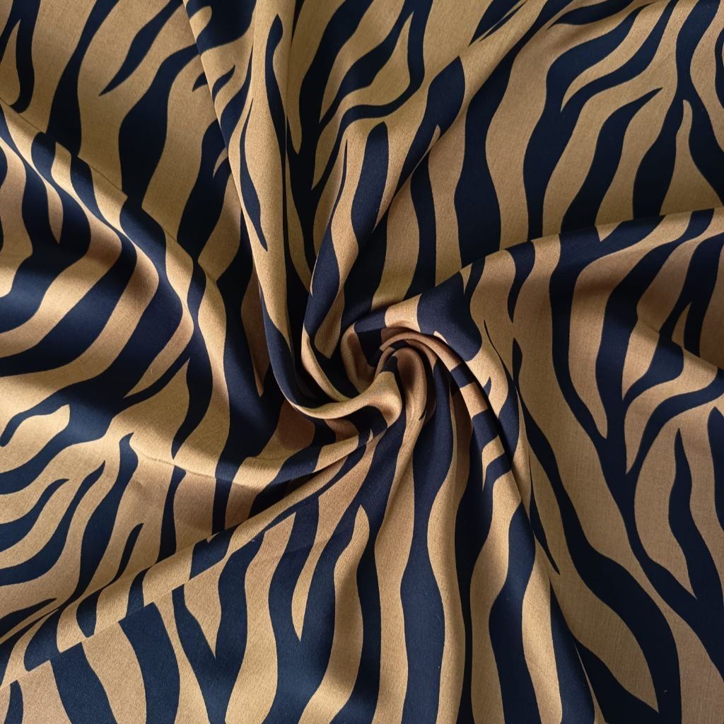 Viskózová látka s černo-hnědým zviřecím potiskem