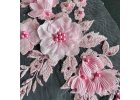 Krajková aplikace (vstavka), vyšívaná na tylu, zdobená korálky a štrasem stříbrno-růžová