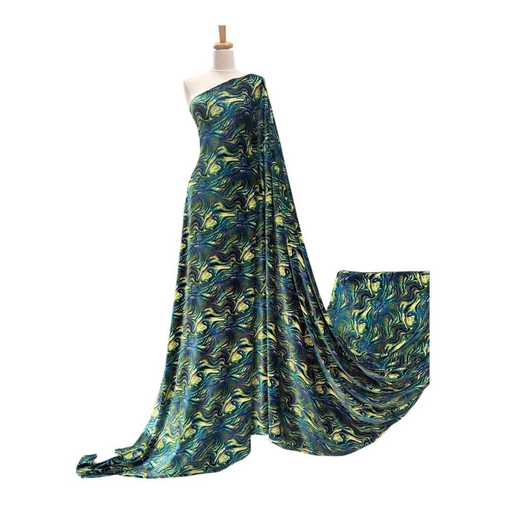 Samet pružný fialovo-zelený